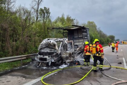 Unsere Feuerwehreinsatzkräfte wurde zu einem brennenden Kleintransporter auf der Autobahn alarmiert. Bereits auf der Anfahrt war eine deutliche Rauchsäule sichtbar. Aufgrund der Einsatzlage wurde die Einsatzstelle entgegen der Fahrtrichtung angefahren.